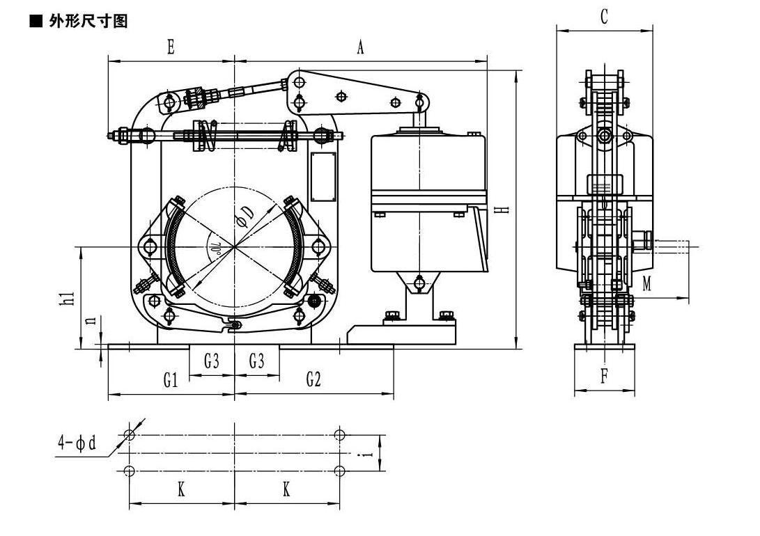 ▲ 常閉式設(shè)計,(斷電)彈簧制動,(通電)推動器釋放。